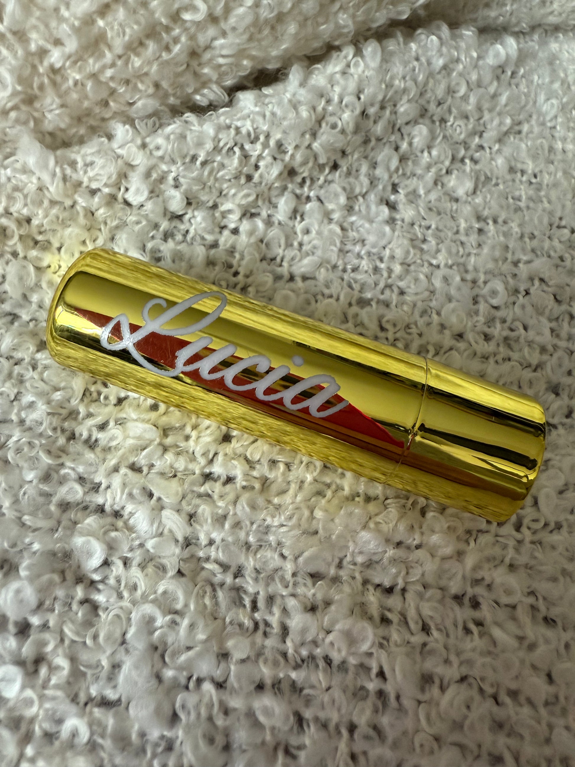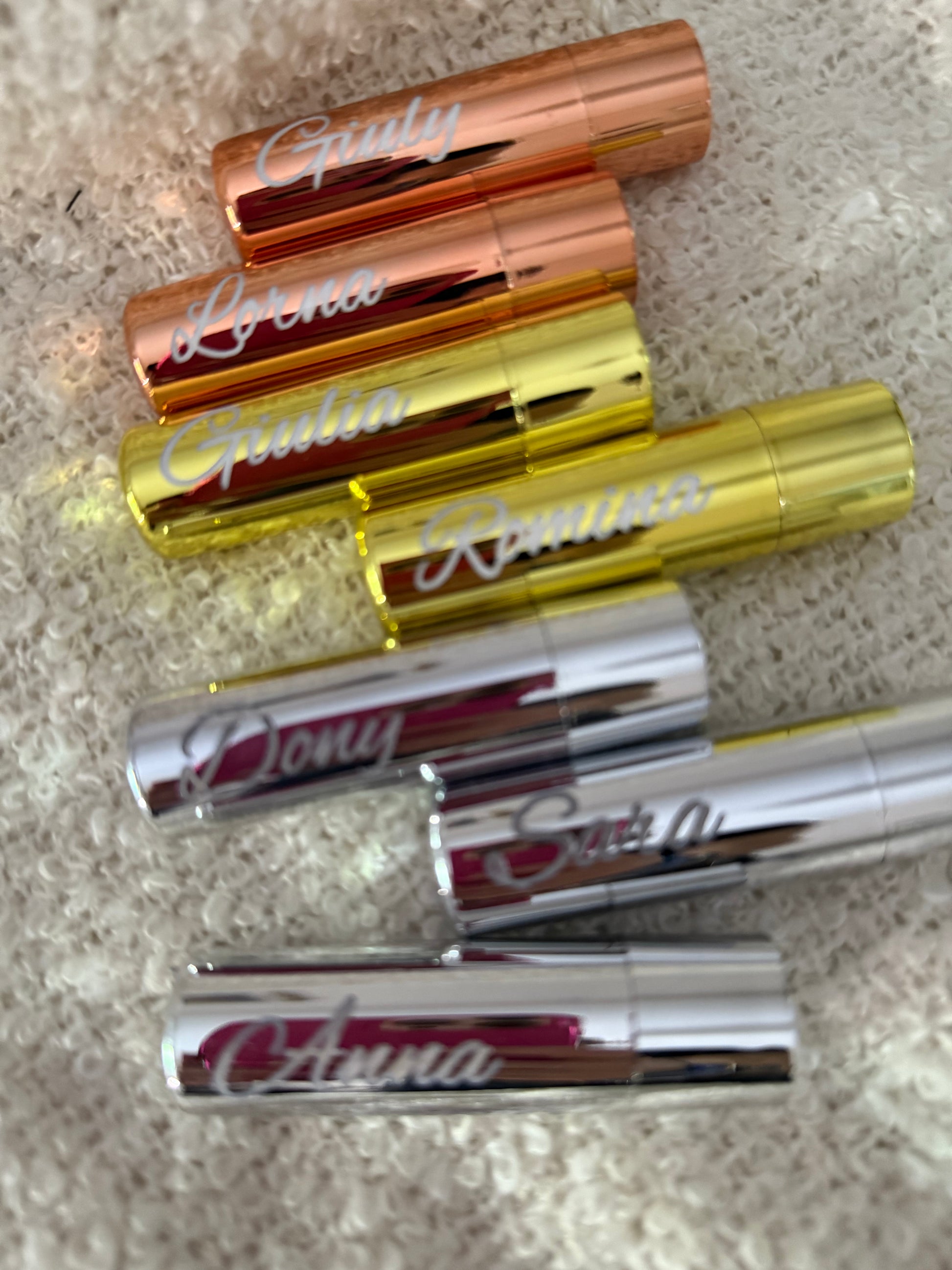 Balsamo labbra con finitura metallica, personalizzato con incisione.